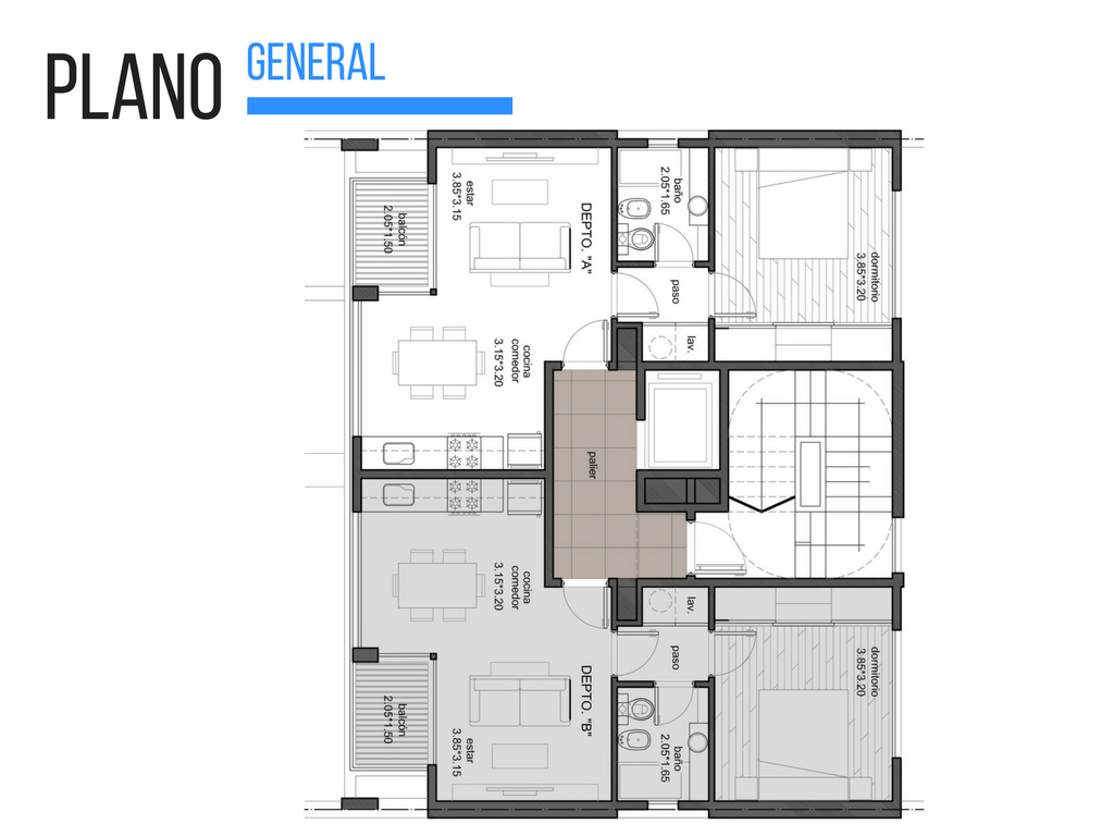 Se presenta este proyecto con la finalidad de cubrir la necesidad habitacional, contará con dos departamentos pasantes por piso los cuales tendrán, ambos, orientación al frente y al contra frente. En el frente se encuentra la cocina y el living con un balcón y en el contra frente el dormitorio, pensando en la tranquilidad a la hora de descansar y no escuchar ruidos molestos provenientes de la calle. Todas las unidades se entregan totalmente terminadas, con muebles de cocina completa, pisos, revestimientos, carpintería de aluminio, sanitarios y griferías de primeras marcas.